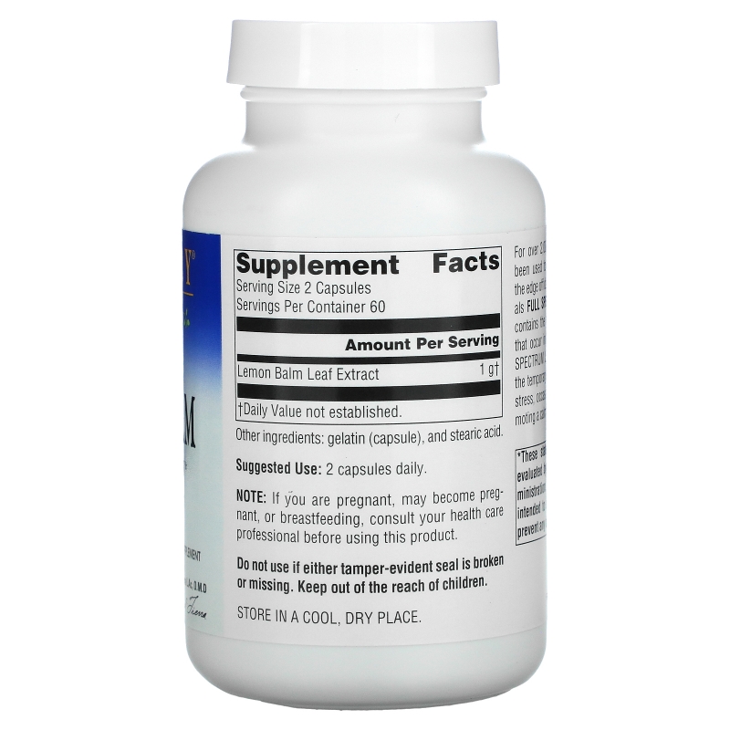 Способ приема, инструкция применения добавки Planetary Herbals, Мелисса, полный спектр, 500 мг, 120 капсул